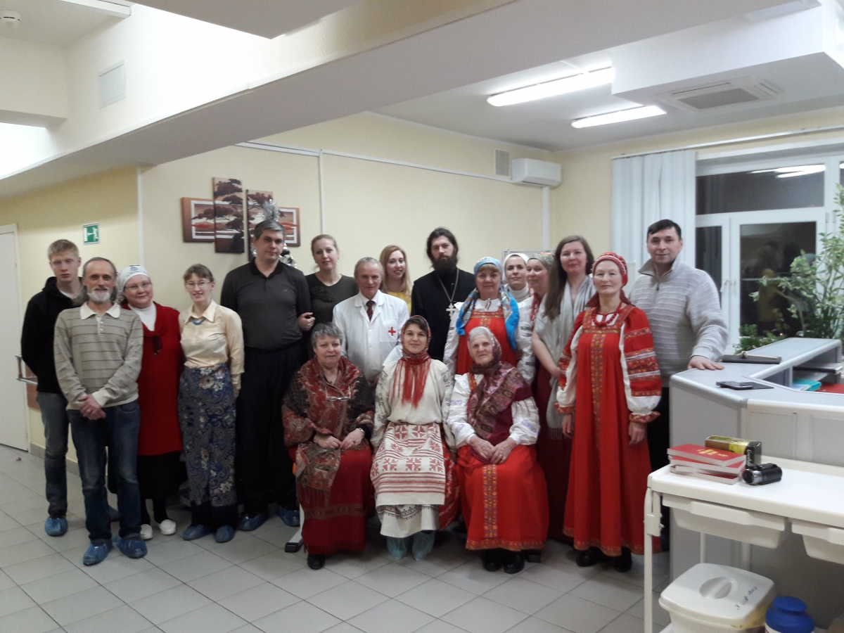 Большое удовольствие пациентам доставил своим выступлением хор группы милосердия под управлением Анны Демиденко, который исполнил рождественские колядки: русские, украинские и белорусскую. Народные напевы перемежались с рождественскими стихами, поздравлениями и добрыми пожеланиями. Яркая рождественская звезда, с которой выходили колядовщики, придавала выступлению особую праздничность.