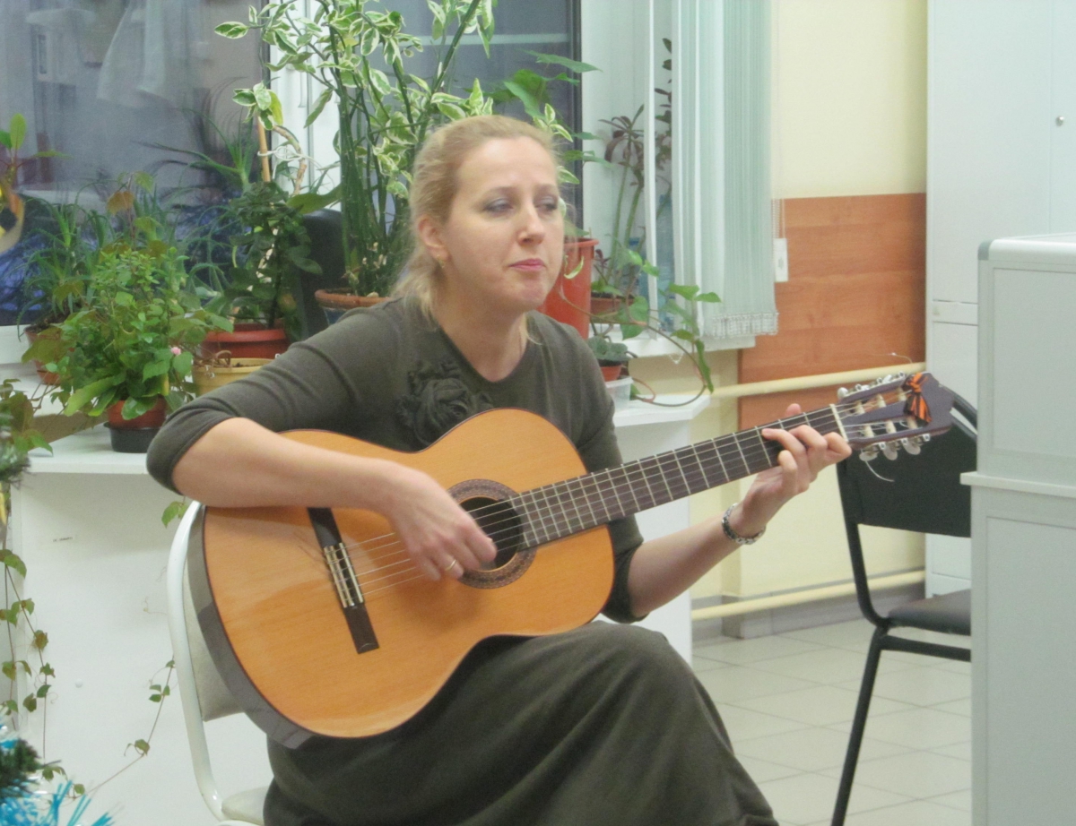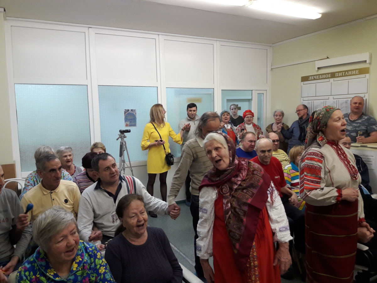 Свои песни с большим успехом исполнили барды Людмила Щербакова, Сергей Елисеев и Анастасия Бухарина. Свои замечательные стихи о Рождестве прочитала Вера Дмитриева. Целое представление устроила для зрителей музыкальный терапевт Ирина Сорочьева. Она раздала больным народные музыкальные инструменты: трещетки, колокольчики, маленькие бубны, шаркуны и барабанчики, и когда она исполняла известные песни, зрители с удовольствием аккомпанировали ей и сами подпевали музыканту. А песню «В лесу родилась елочка» пели даже в хороводе: каждый взял за руку своего соседа! Все зрители и добровольцы самозабвенно пели хором, на миг почувствовав себя детьми!