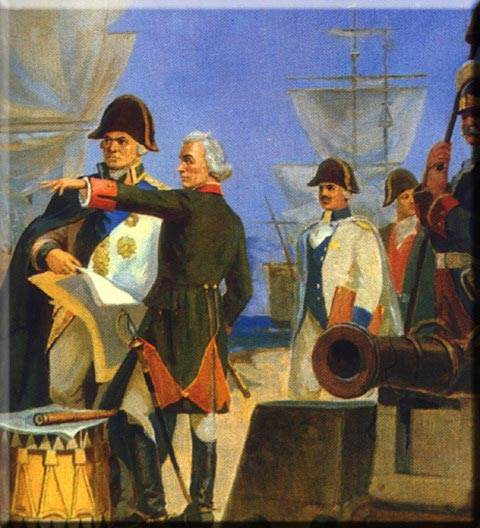 Первой задачей эскадры было взятие Ионических островов, расположенных вдоль юго-западного побережья Греции, главный из которых – Корфу, имея и без того мощнейшие в Европе бастионы, был еще значительно укреплен французами и считался неприступным. Коренные жители занятых французами островов были православными греками, а на Корфу находилась (пребывающая и доныне) великая христианская святыня – мощи святителя Спиридона Тримифунтского. Феодор Ушаков поступил премудро: он, прежде всего, обратился с письменным воззванием к жителям островов, призывая их содействовать в «низвержении несносного ига» безбожников-французов. Ответом была повсеместная вооруженная помощь населения, воодушевленного прибытием русской православной эскадры. Как ни сопротивлялись французы, наш десант решительными действиями освободил остров Цериго, затем Занте...