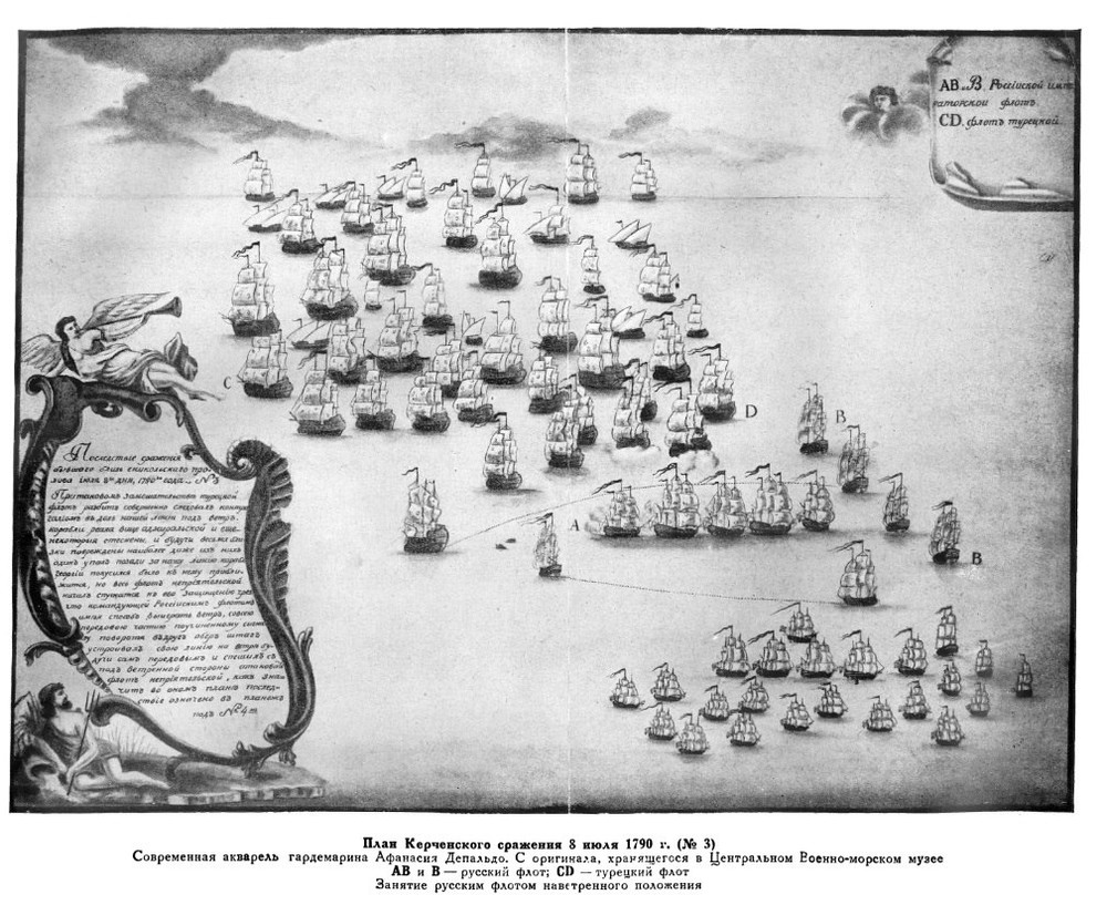 В начале июля 1790 года, недалеко от Керченского пролива, произошло очередное сражение, в котором эскадра Ушакова вновь одержала блистательную победу. «Я сам удивляюсь проворству и храбрости моих людей, – писал Ушаков. – Они стреляли в неприятельский корабль не часто и с такою сноровкою, что, казалось, каждый учится стрелять по цели». Конечно, такая неустрашимость и спокойствие духа, проявленные участниками боя, говорят о великом примере их предводителя. Екатерина II писала князю Потемкину: «Победу Черноморского флота над Турецким мы праздновали вчера молебствием у Казанской... Контр-адмиралу Ушакову великое спасибо прошу от меня сказать и всем его подчиненным».