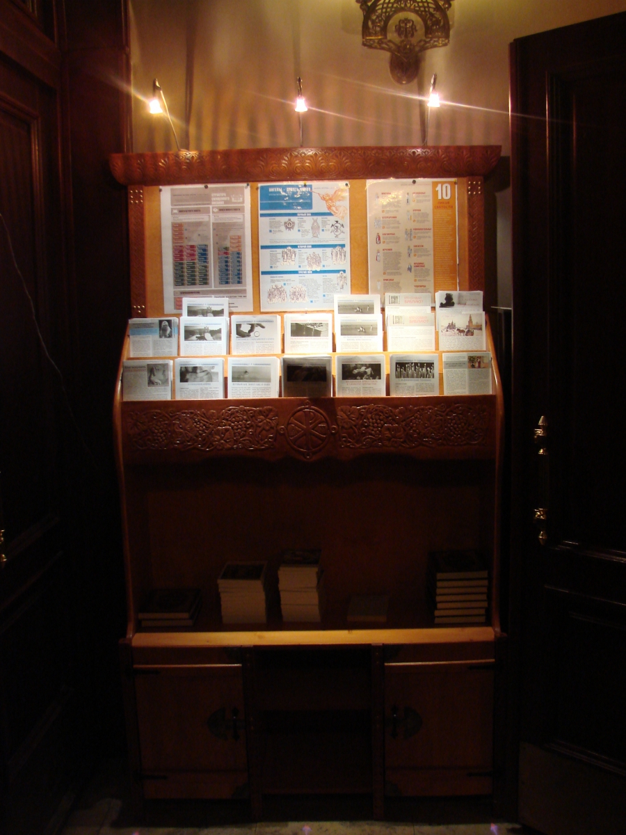 Один из таких миссионерских уголков был представлен здесь же на собрании. Сообщение о том, что резные миссионерские уголки, стоимостью несколько десятков тысяч, и годовой запас листовок мы раздаём бесплатно, вызвало среди собравшихся сначала некоторое замешательство, вскоре, однако, сменившееся бурными аплодисментами. Представители многих храмов заявили, что непременно желают поучаствовать в этом проекте. После собрания представленный здесь уголок был перенесён в притвор Храма Всемилостивого Спаса, где он и начал осуществлять свою миссионерскую деятельность. Подобные "Миссионерские уголки" уже установлены в Храме Преображения Господя в Тушино и свят. Николая Чудотворца в Щукино. В ближайшее время планируется установить уголки еще в нескольких московских Храмах.