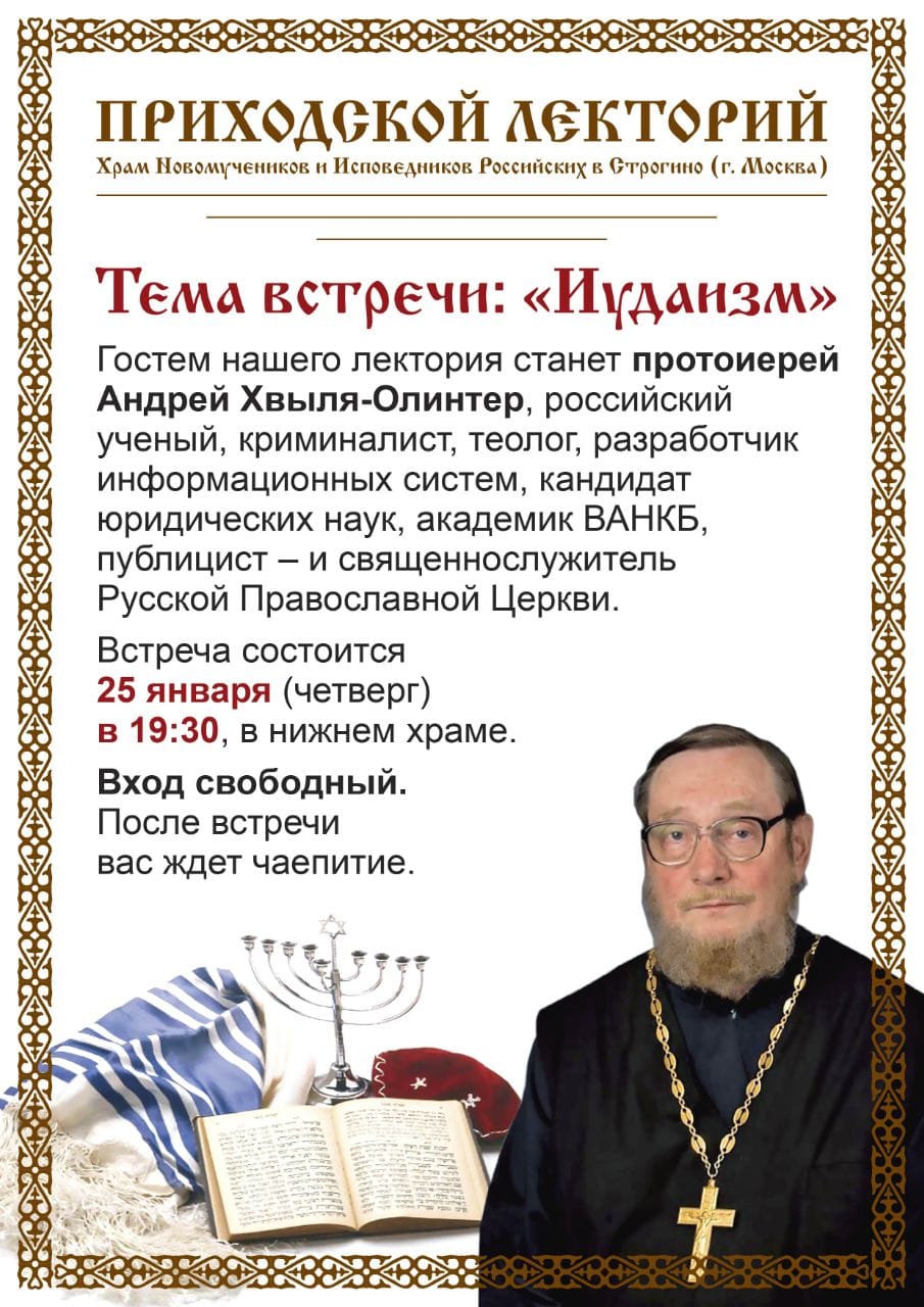 гостем лектория станет протоиерей Андрей Хвыля-Олинтер — российский ученый, криминалист, теолог, публицист, священнослужитель Русской Православной Церкви.