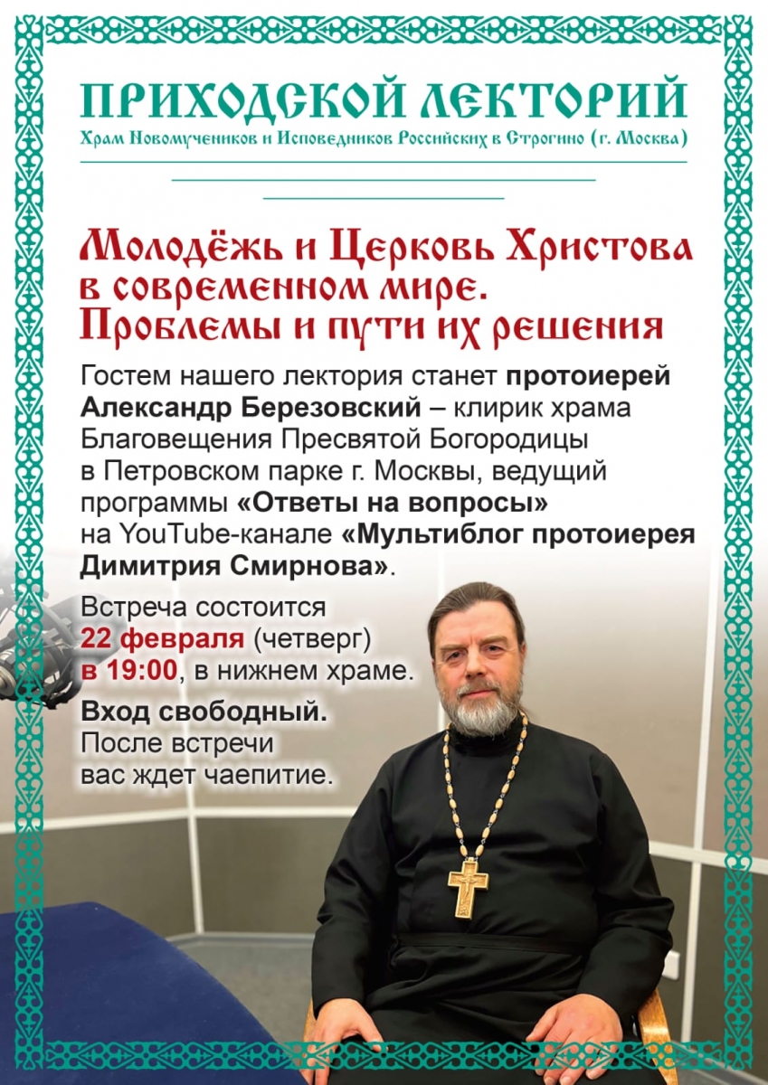 22 февраля в храме Новомучеников и Исповедников Российских в Строгино пройдет лекция на тему: