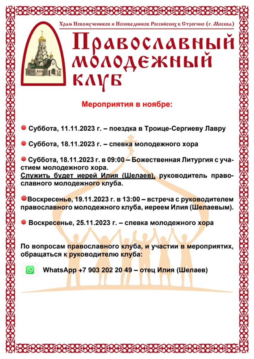 Расписание мероприятий Православного молодёжного клуба при Храме Новомучеников и Исповедников Российских в Строгино. Ноябрь 2023 г. 6 ноября 2023 г.