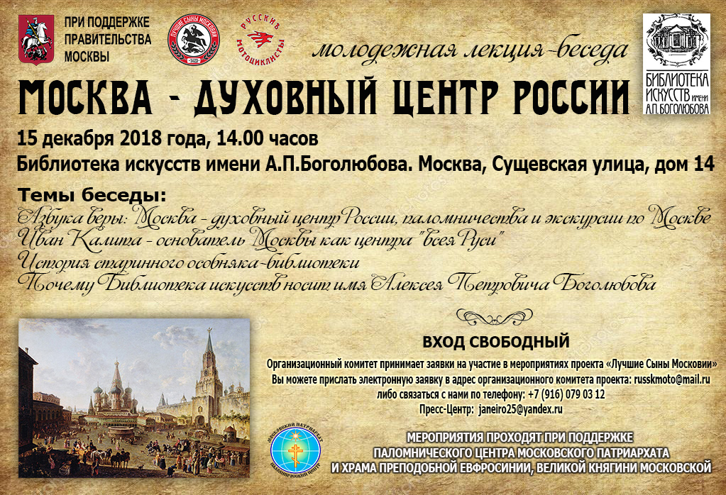 Приглашаем вас принять участие в лекции-беседе «Москва – духовный центр России».