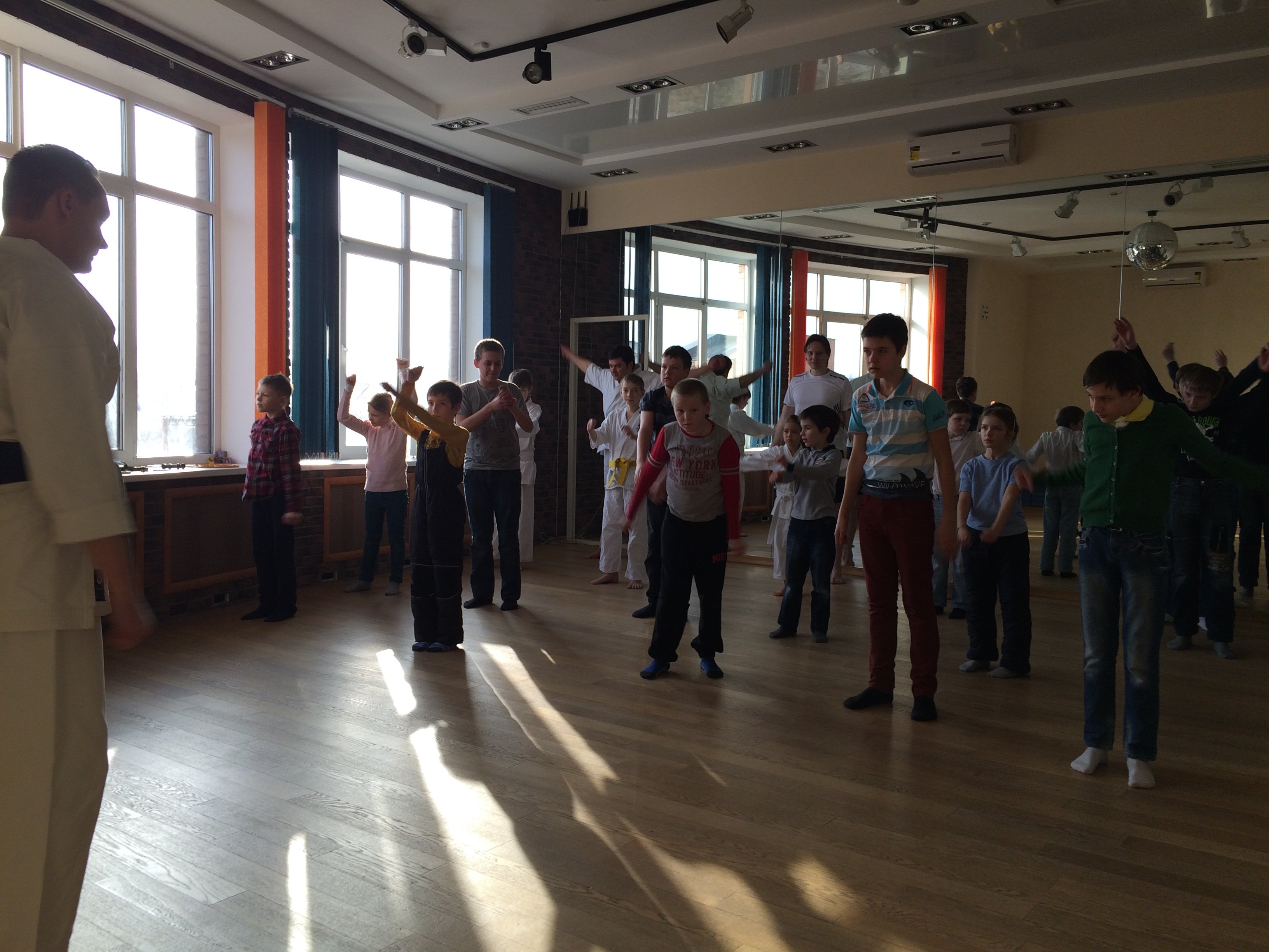 После ребят ждал мастер-класс по самообороне в спортивном зале клуба. Занятие с детьми проводил Евгений Александрович Капитанов - руководитель военно-спортивного клуба "Патриот" международной детско-юношеской организации содействия военно-спортивному и патриотическому воспитанию "Ассоциация Витязей". Евгений Александрович показал, как в различных ситуациях нападения защитить себя и своих близких. Народ оживился и почувствовал себя героями, способными оказать сопротивление врагу. В конце тренировки (мастер-класса) юным защитникам было сказано, что все, чему они сегодня научились, следует использовать только в мирных целях, а не показывать свои навыки на слабых, мальчишки согласились. Тренер пригласил их в секцию при клубе для продолжения занятий.