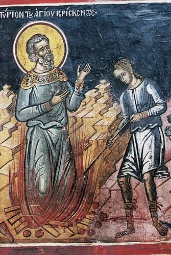 О святом апостоле Крискенте упоминает святой апостол Павел во 2-м Послании к Тимофею (2Тим.4:10), говоря, что Крискент пошел с проповедью в Галатию. Там он был поставлен епископом, а затем проповедовал Слово Божие в Галлии. В городе Виенне апостол Крискент поставил епископом своего ученика Захарию. Возвратившись в Галатию, он мученически скончался при царе Траяне (98–117). В Синаксаре о нём сказано: «…о блаженном Крискенте апостол (Павел) пишет: Крискент отправился в Галатию. Святой Крискент был епископом Халкидона в Галатии».