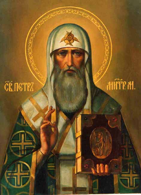 Святой митрополит Петр родился на Волыни от благочестивых родителей. Двенадцати лет поступил в монастырь. Достигнув священства, он по благословению своего наставника удалился из монастыря и основал обитель в уединенном месте на берегу реки Рати. Здесь он так прославился подвигами благочестия, что сделался известным всей Волыни. В 1308 году патриарх Константинопольский Афанасий возвел св. Петра на Русскую митрополию. Много трудностей испытал первосвятитель в годы управления. В страдавшей под татарским игом Русской Земле утверждал истинную веру, призывал враждовавших князей к миролюбию и единству.