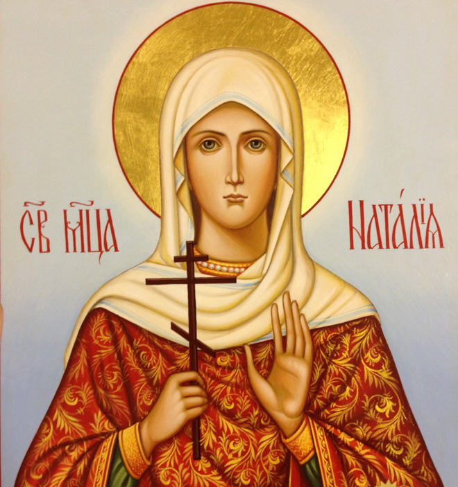 Небесной покровительницей всех Наталий принято считать святую мученицу Наталью Никомидийскую, жившую в начале IV века. В Христианской Церкви эта святая имеет особый статус — Наталия названа «бескровной мученицей», то есть это мученица, которая умерла не от пролития крови (пыток или казни), а от внутренних душевных, сердечных страданий. Такие муки особые и самые, может быть, тяжелые: она видела пытки и страдания мужа (святого мученика Адриана), подбадривала его, прося предпочесть смерть в вере жизни без Христа. В Житии Адриана и Натальи рассказано об их великой любви в связи с чем, святые являются одними из покровителей благочестивого супружества. Поэтому и имена их, как и имена святых Петра и Февронии, обычно упоминаются в неразрывной связке.