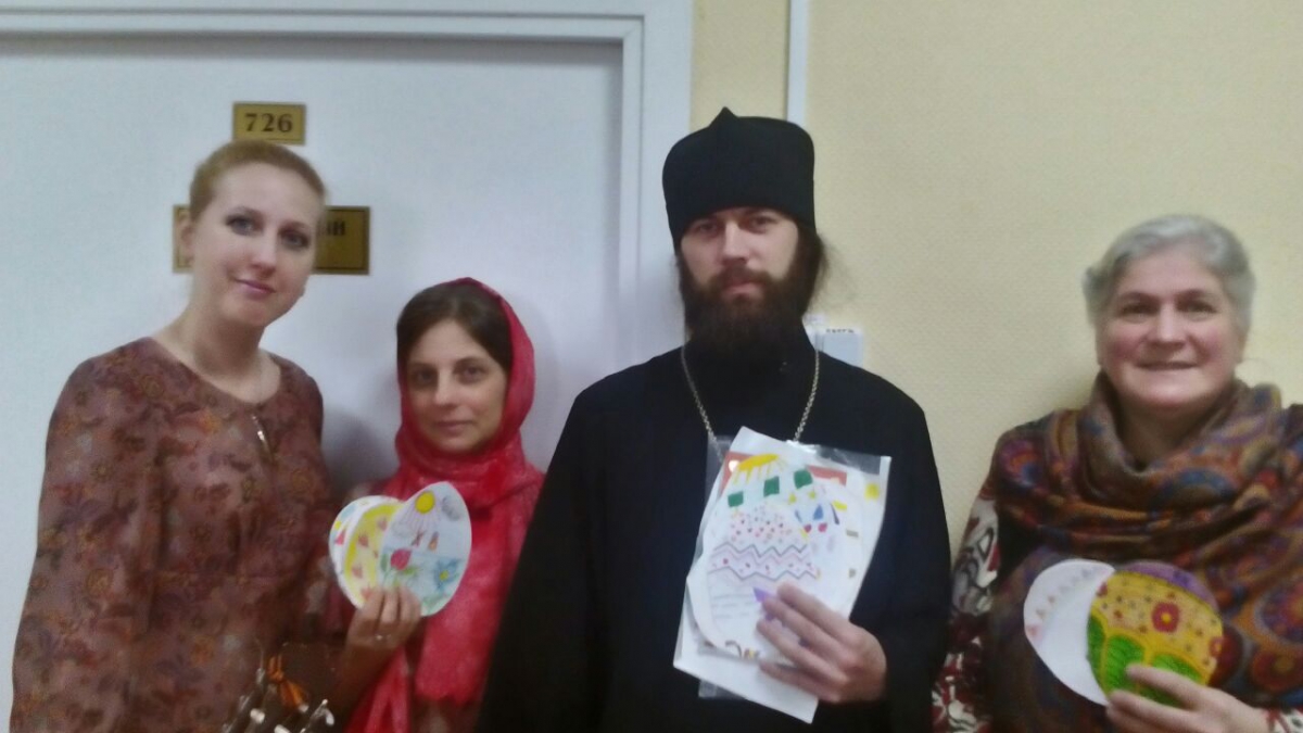 В этом году в поздравлении принимали участия дети: ученики начальной школы 1519, а также учащиеся воскресной школы храма приготовили открытки на пасхальную тематику с добрыми пожеланиями, которые были вручены пациентам. Это особенно растрогало одиноких пожилых людей.