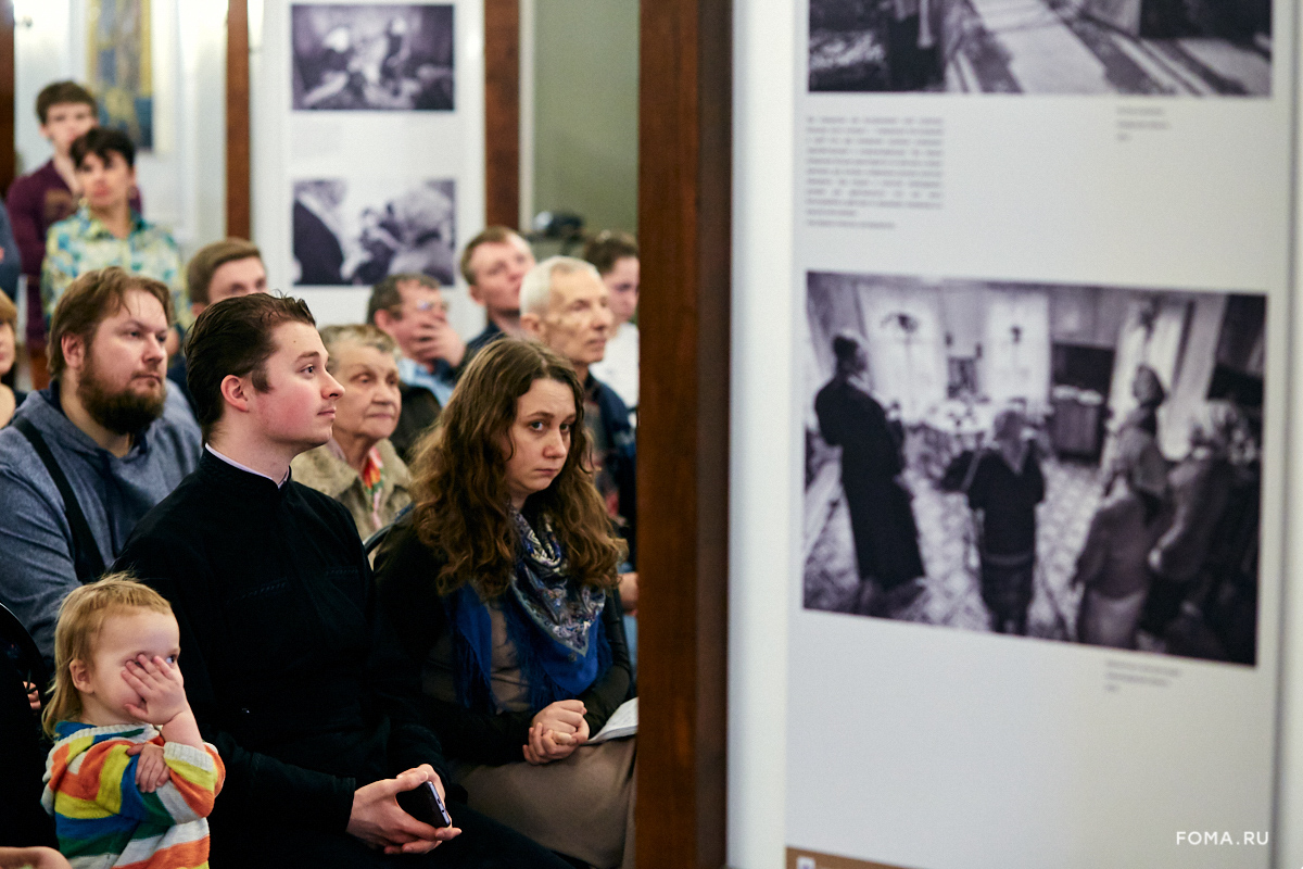 С приветственным словом также выступили научный сотрудник лаборатории Татьяна Крихтова, заведующий практическим отделом ПСТБИ чтец Кирилл Алексин, священник из малого города Нижегородской области протоиерей Арсений Ерзаулов и автор фотопроекта Сергей Пронин. Фотограф поделился впечатлениями об участии в работе исследователей и рассказал о том, как родилась и трансформировалась идея выставки, как за унылой серостью будней в малом городе ему удалось увидеть действительную жизнь.