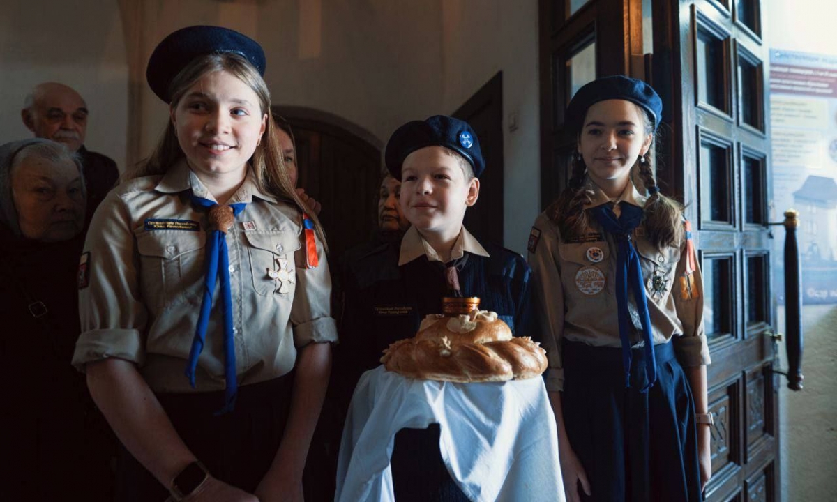 Торжества начались с радушной встречи Владыки у входа в храм, где скауты нашего прихода поднесли ему хлеб-соль в знак почтения и гостеприимства.