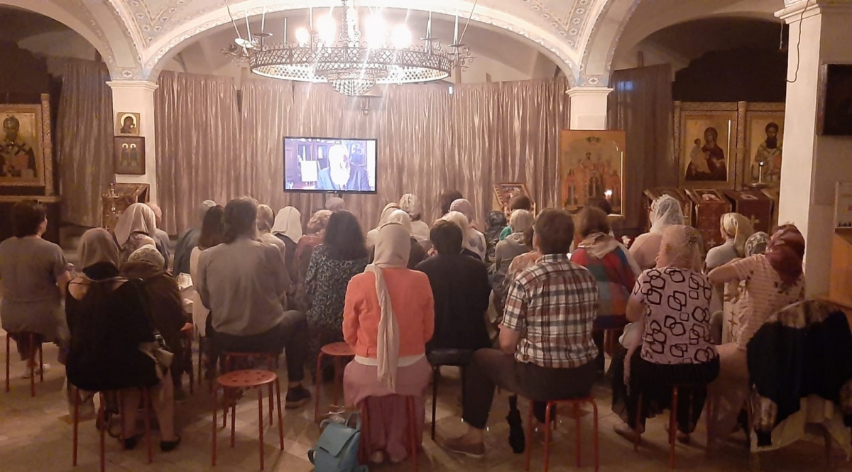 После просмотра фильма взял слово Сергей Васильев, преподаватель Воскресной школы и Приходского университета нашего храма. В своем выступлении он говорил о роли Царя Николая и Царственных мучеников в нашей истории, о понимании монархии как благословленной Богом формы государственного правления, о необходимости воспитания подрастающего поколения на примере Святой Царской Семьи.