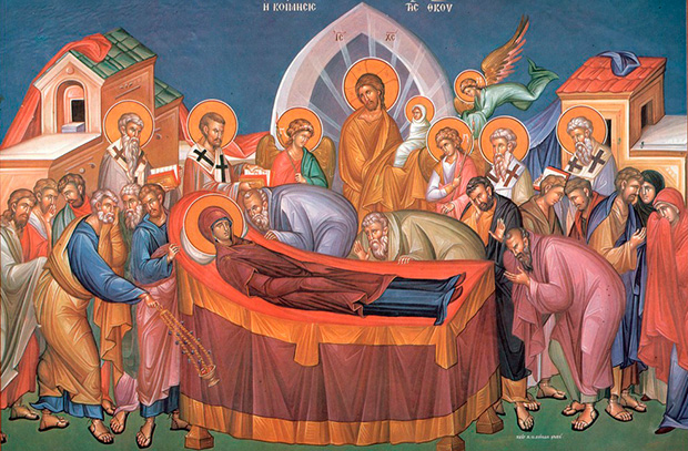 Св. Симеон Солунский пишет, что «Пост в августе (Успенский) учрежден в честь Матери Божия Слова, Которая, узнавши Свое преставление, как всегда подвизалась и постилась за нас, хотя, будучи святой и непорочной, и не имела нужды в посте; так особенно Она молилась о нас, когда намеревалась перейти от здешней жизни к будущей, и когда Ее блаженная душа имела чрез Божественного духа соединиться с Ее сыном. А потому и мы должны поститься и воспевать Ее, подражая житию Ее и пробуждая Ее тем к молитве за нас. Некоторые, впрочем, говорят, что этот пост учрежден по случаю двух праздников, то есть Преображения и Успения. И я также считаю необходимым воспоминания этих двух праздников, одного – как подающего нам освящение, а другого – умилостивление и ходатайство за нас».