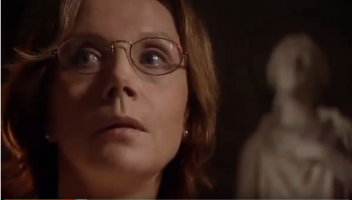 Кадр из фильма Владимира Хотиненко "Паломничество в вечный город". Ведущая - Ирина Купченко
