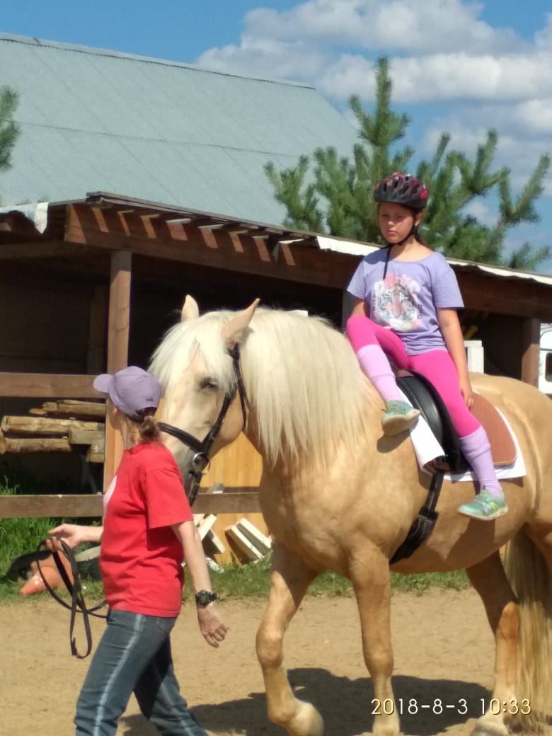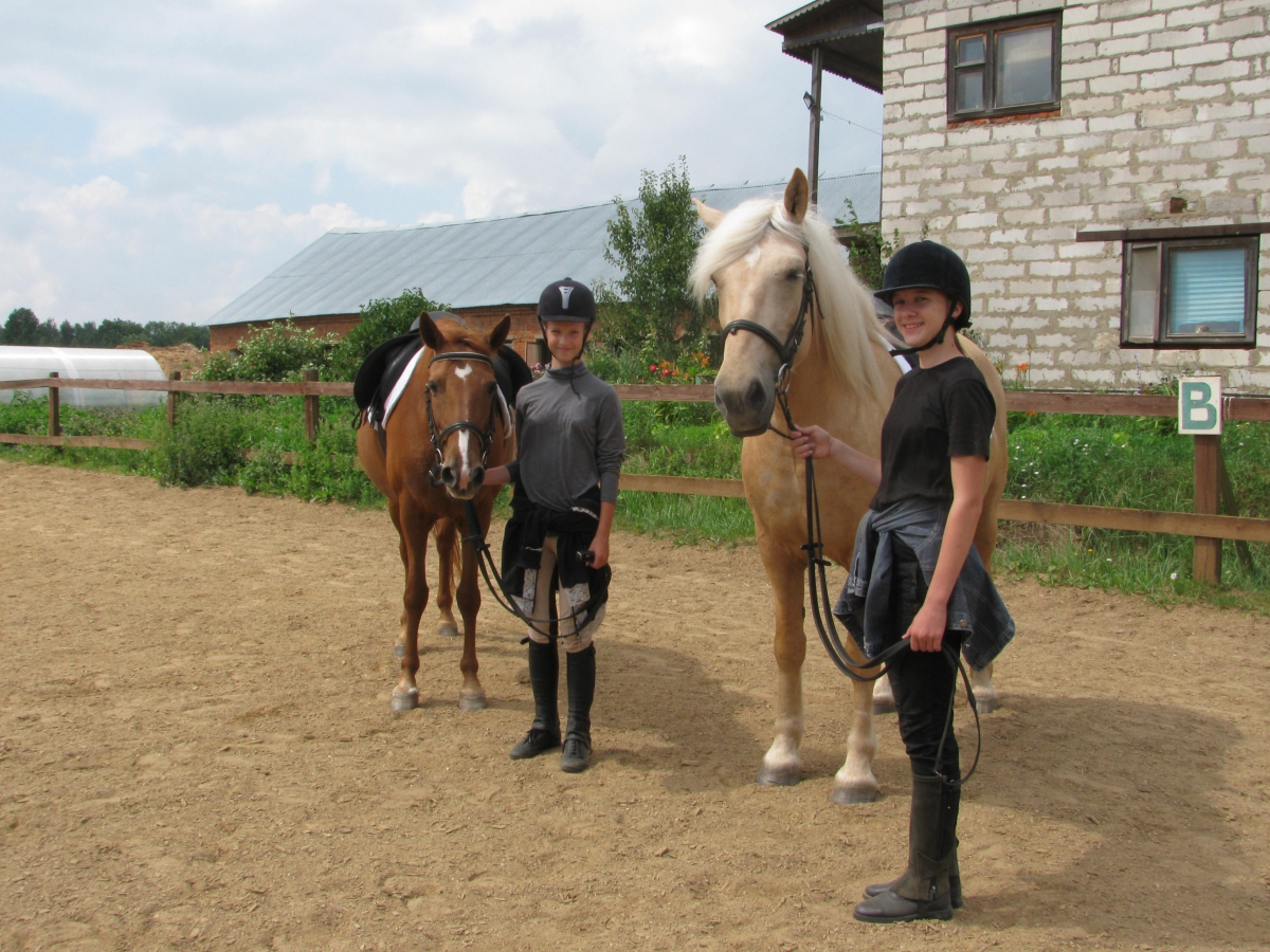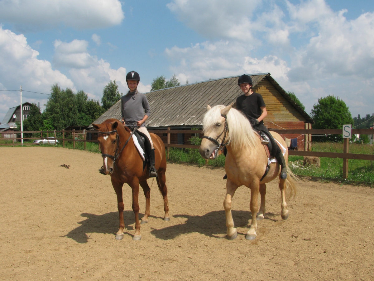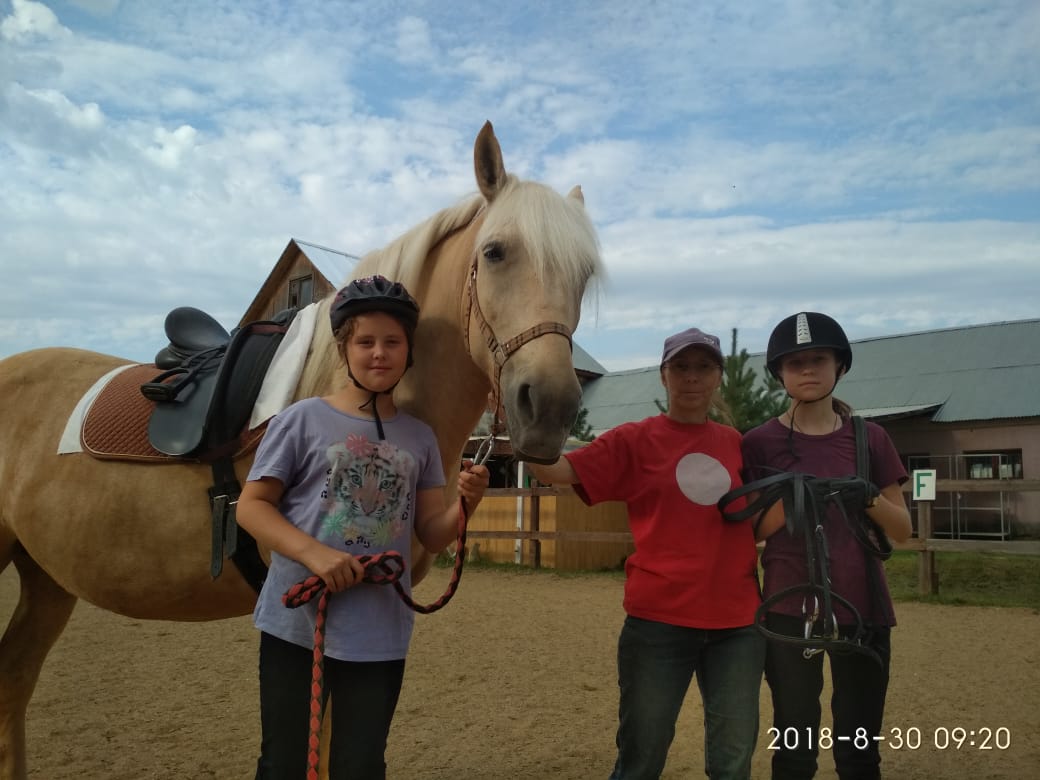 Настя Гонсовская за лето отточила исполнение "детской схемы езды" не только на Мэри но и на сложной для легкого всадника Деметре. Иришка Барбасова преодолела свои страхи и научилась самостоятельно ездить бодрой рысью и терпеть галопчик. Новенькие , сестренки Аня и Ксюша, 10ти и 8ми лет успешно освоили азы общения с рыжей "нянькой" Мэри и даже начали привыкать к езде рысью без стремян сохраняя при этом правильную посадку и помогая друг другу во время занятий .