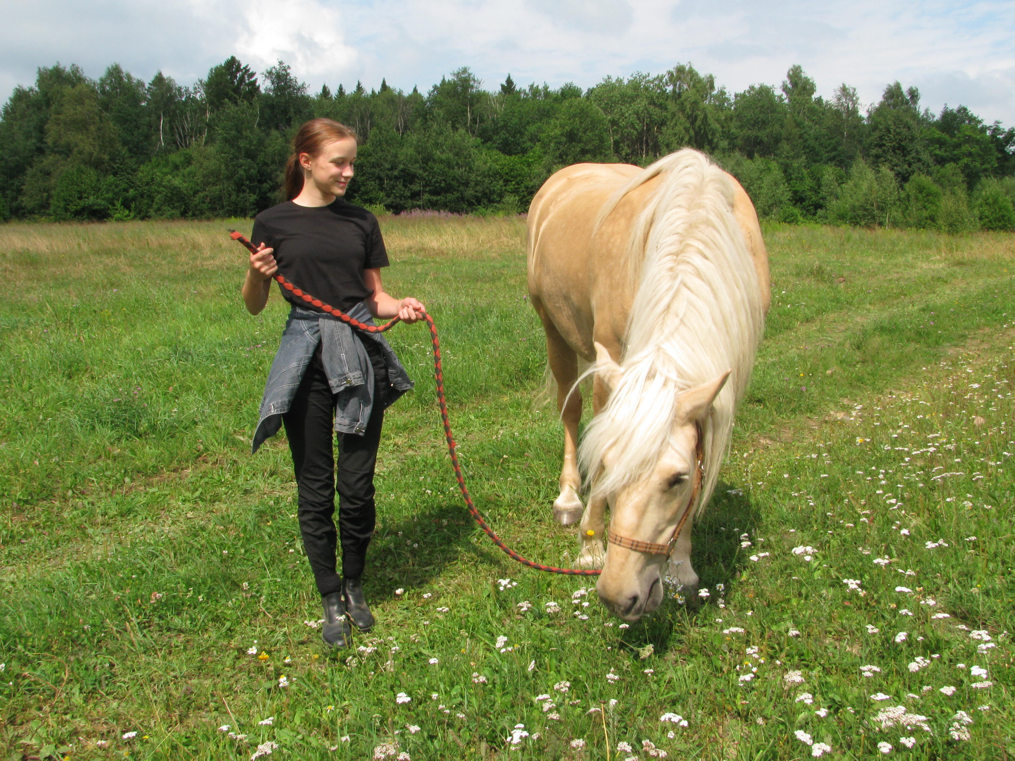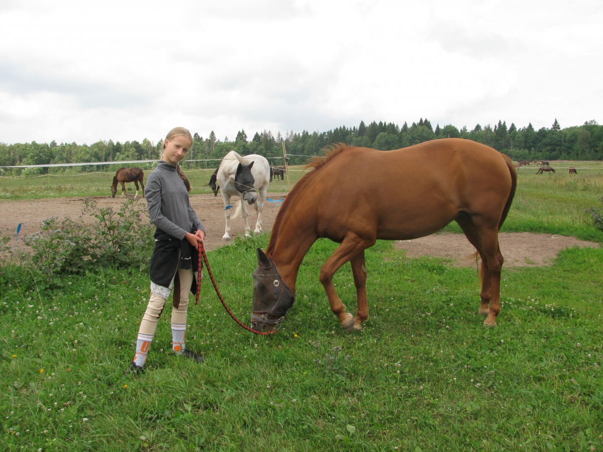 Еще одна новенькая девочка , Анечка Шалюхина 9ти лет так уверенно и жизнерадостно влилась в жизнь нашего клуба что теперь мы просто не представляем себе наш коллектив без нее. Но самое удивительное что Анюте пришлась по душе .... Деметра - довольно сложная для начинающих кобыла! И девочка не согласна менять ее на более легкий вариант! А к концу лета нас посетил 13 летний Тимофей. Как выяснилось он с детства любит лошадей. И хочет учиться ездить верхом. Вот тут то Деметре пришлось отложить баловство и работать всерьез. Ведь юный Тимоша ростом под 170 и весит довольно прилично. Но мы надеемся что Тимофей и Дёма привыкнут друг к другу и будут весело сотрудничать.