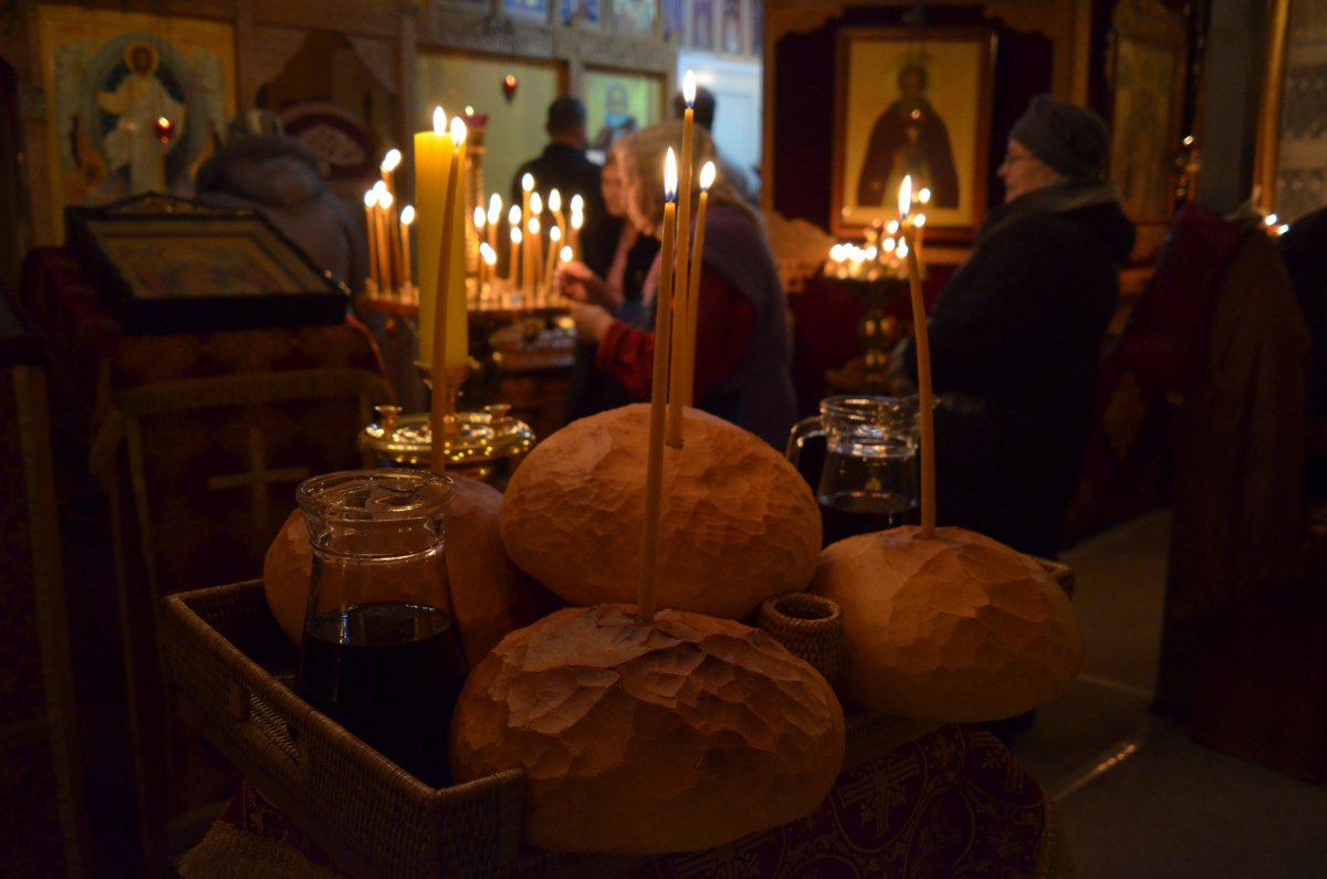 Традиционно, во время всенощного бдения лития совершалась крестным ходом вокруг храма, а после молитвы главопреклонения – благословение хлебов в храме. К этому времени храм успел наполниться изумительным ароматом свежевыпеченного хлеба, исходящим от только что вынутых из печи, и поэтому еще горячих, литийных хлебов.