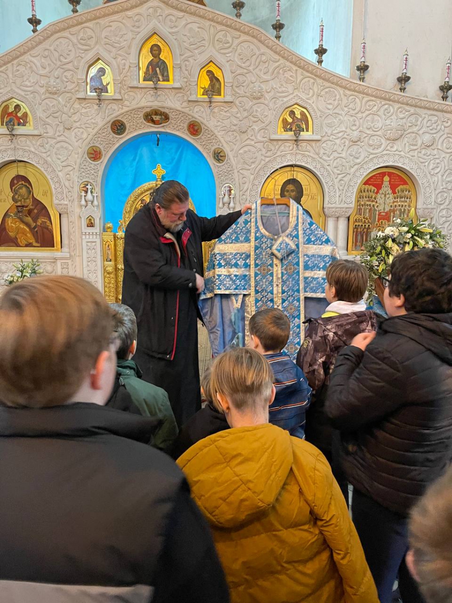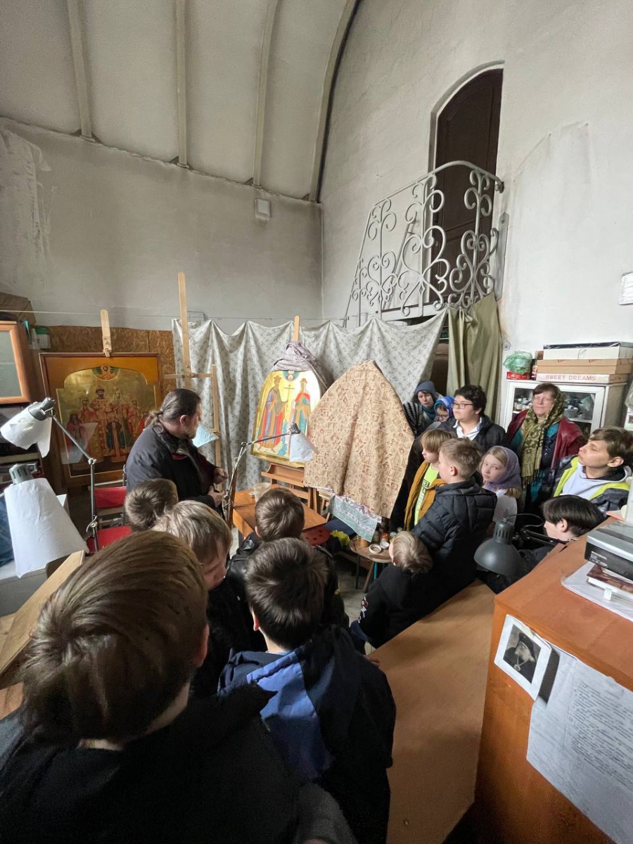 Обзорную экскурсию по храму провёл священник Илия Шелаев. Батюшка рассказал об устройстве православного храма, о совершаемых в нём богослужениях и таинствах. Показал ребятам облачения священнослужителей. В конце экскурсии группа посетила иконописную мастерскую, где экскурсовод рассказал об этапах написания икон, техниках иконописи. Завершилось общение с батюшкой ответами на интересные вопросы детей. Например, говорили о том, чем звонница отличается от колокольни.