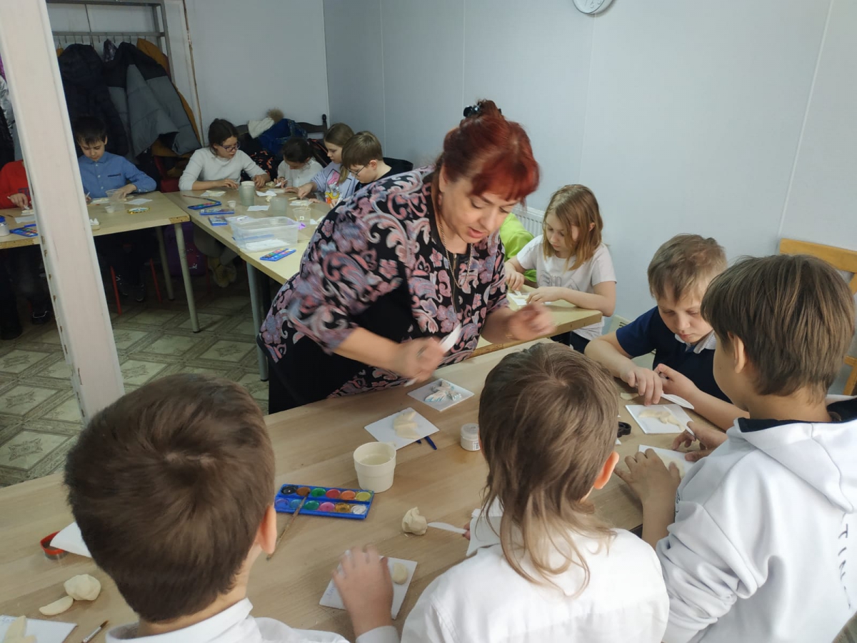 После экскурсии гости были приглашены в гостиную нашего храма, где Горбатова Ольга Владимировна и Васильева Злата Станиславовна провели мастер-класс по лепке из солёного теста. Каждый ребёнок изготовил летящего голубя - ведь как раз накануне мы отмечали великий двунадесятый праздник Благовещения Пресвятой Богородицы. Когда по традиции русский народ выпускает птиц на волю.