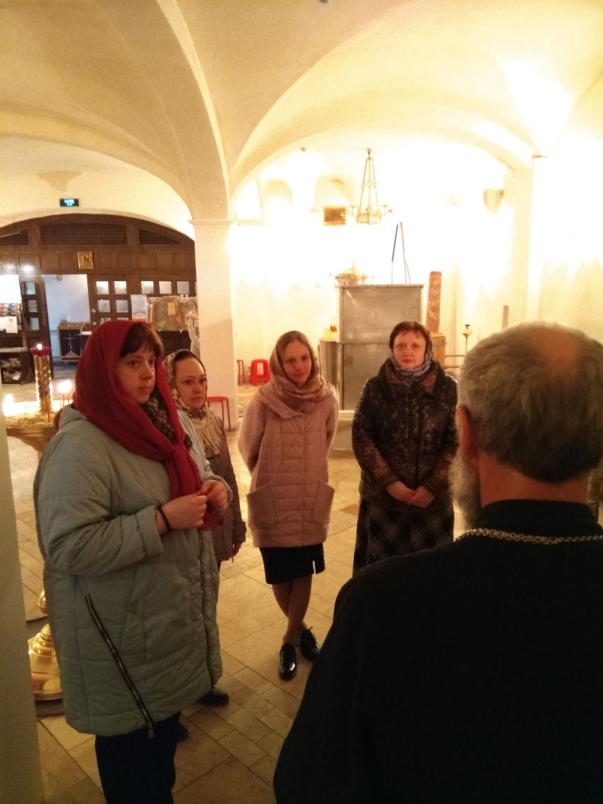 На Светлой Пасхальной седмице в нашем храме проводились экскурсии для преподавателей ОПК. 12 апреля в Храм Новомучеников и Исповедников Российских в Строгино впервые пришли педагоги ГБОУ Школы N 86. Экскурсию по Храму провел иерей Владимир Федотов.