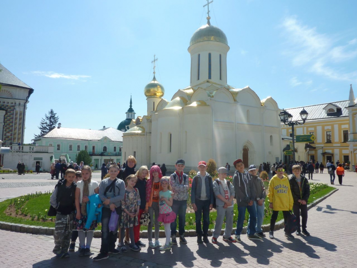 По дороге ученики услышали рассказ о.Илии Шелаева о том, как «на моление к Троице» ходили Цари, а также о родителях преподобного Сергия Радонежского. Путь автобуса проходил мимо таких исторических мест, как село Радонеж, Хотьково. Дети увидели Храм Преображения Господня и памятник святому Сергию в селе, где он родился, где прошли его детство и юность. Из окна автобуса дети полюбовались красивейшим видом Хотьковского монастыря. В этой обители покоятся мощи святых преподобных Кирилла и Марии – родителей преподобного Сергия. Первым местом, которое посетили юные паломники, была Свято-Троицкая Сергиева Лавра.