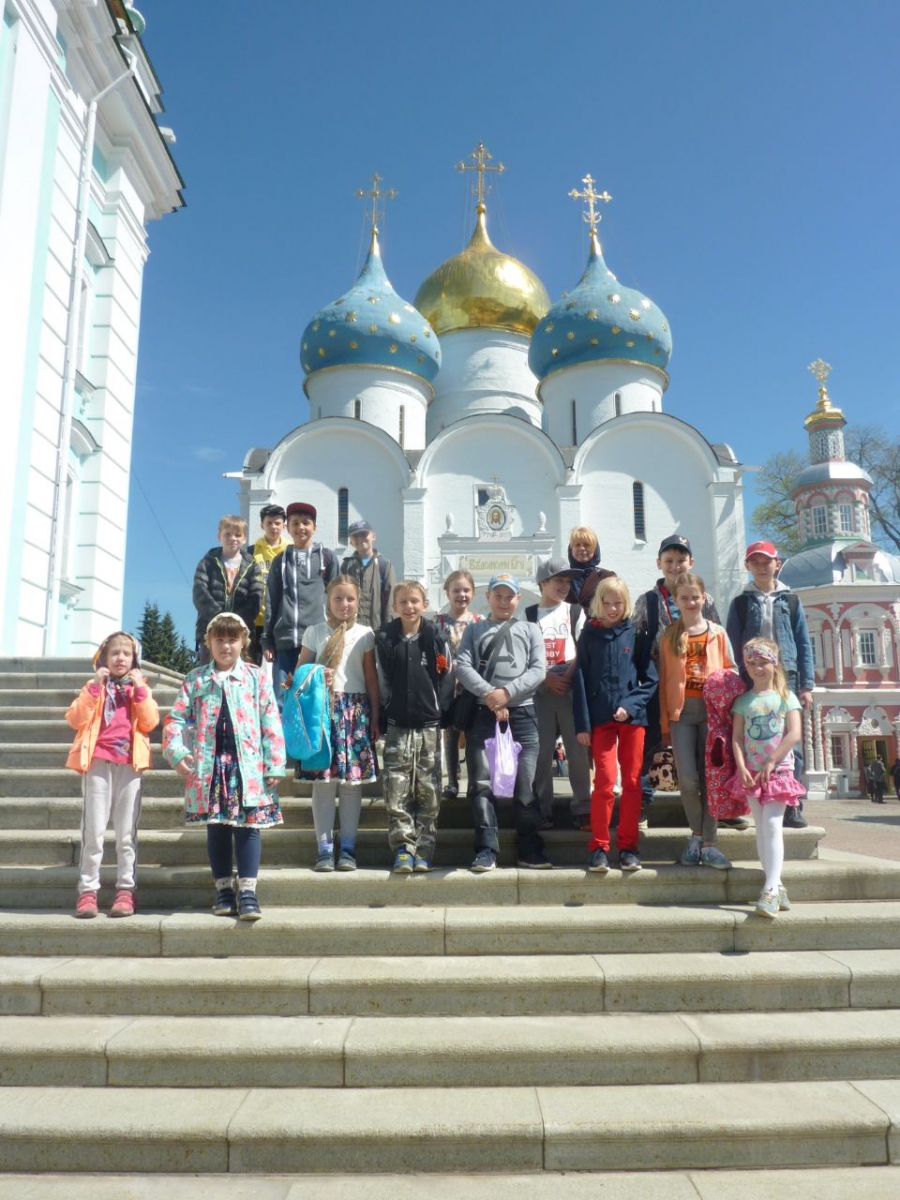 11 мая 4-й класс школы 1519 с сестрами и братьями из 2-го и 1-го класса совершили поездку в Сергиев Посад с иереем Ильей Шелаевым и методистами по ОПК нашего храма.