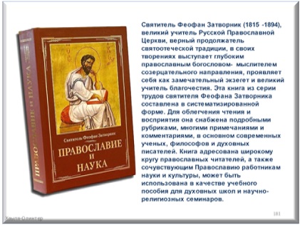 "Создатель дал роду человеческому две книги. В одной показал свое величество, а в другой - свою волю. Первая - видимый сей мир, им созданный. Вторая - Священное Писание".
